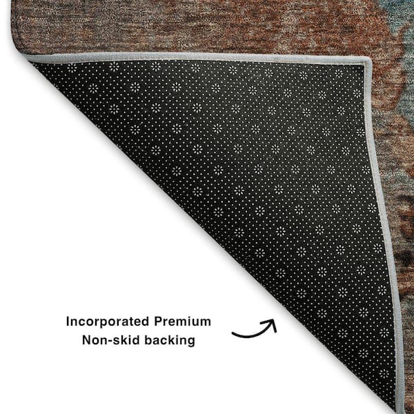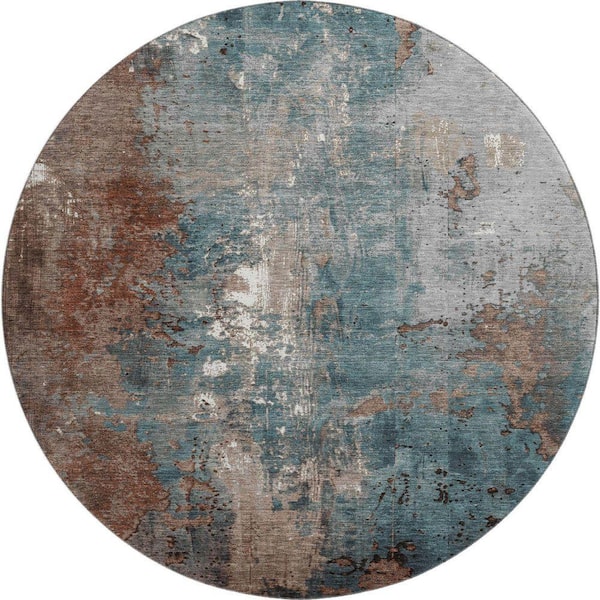 Mayfield Premium Machine Washable Abstract AMF1870 Paprika 8 ft. x 8 ft. Round Rug