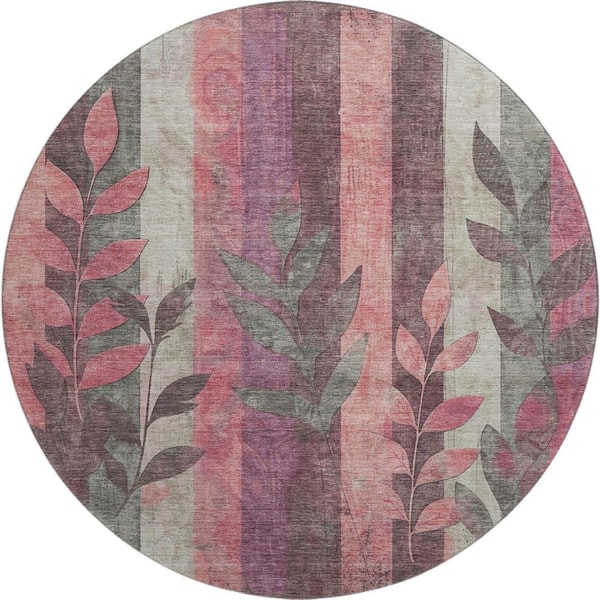 Mayfield Premium Machine Washable Abstract AMF1871 Blush 8 ft. x 8 ft. Round Rug