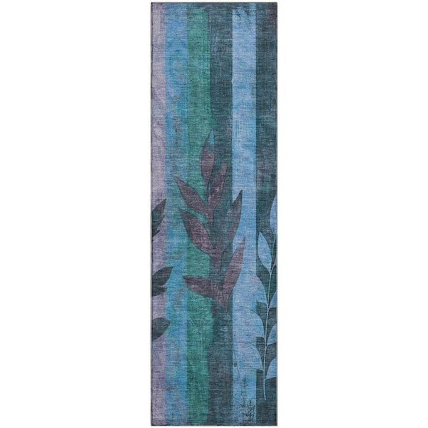 Mayfield Premium Machine Washable Abstract AMF1871 Denim 2 ft. 3 in. x 7 ft. 6 in. Runner Rug