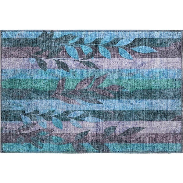 Mayfield Premium Machine Washable Abstract AMF1871 Denim 2 ft. x 3 ft. Area Rug