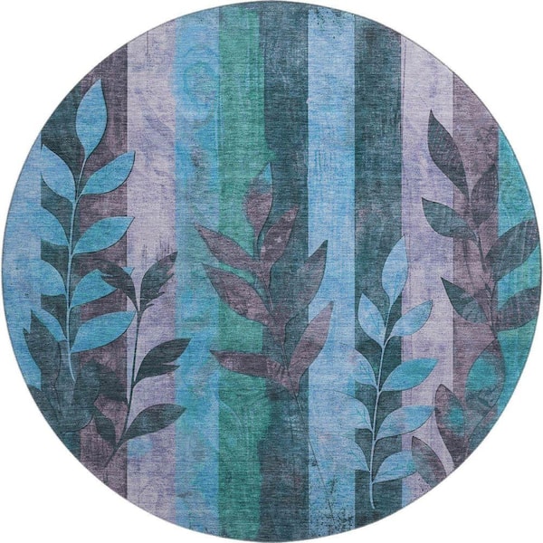Mayfield Premium Machine Washable Abstract AMF1871 Denim 8 ft. x 8 ft. Round Rug