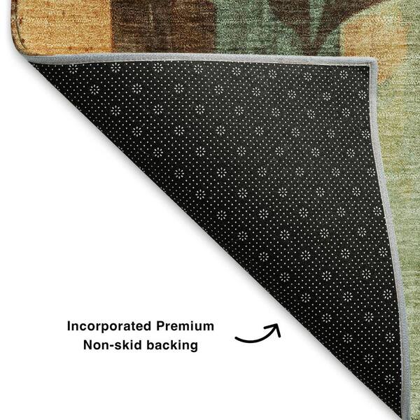 Mayfield Premium Machine Washable Abstract AMF1871 Wheat 8 ft. x 8 ft. Round Rug