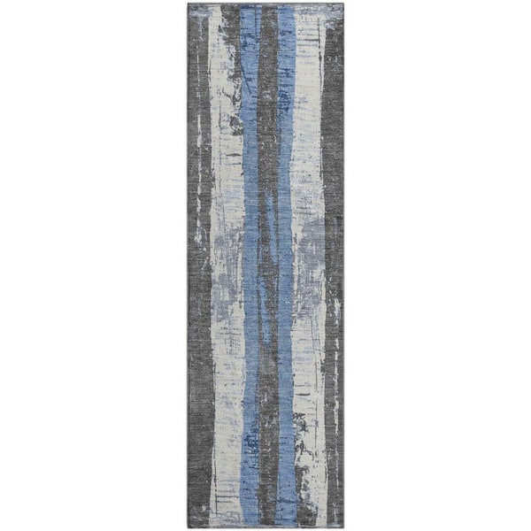 Mayfield Premium Machine Washable Abstract AMF1872 Denim 2 ft. 3 in. x 7 ft. 6 in. Runner Rug