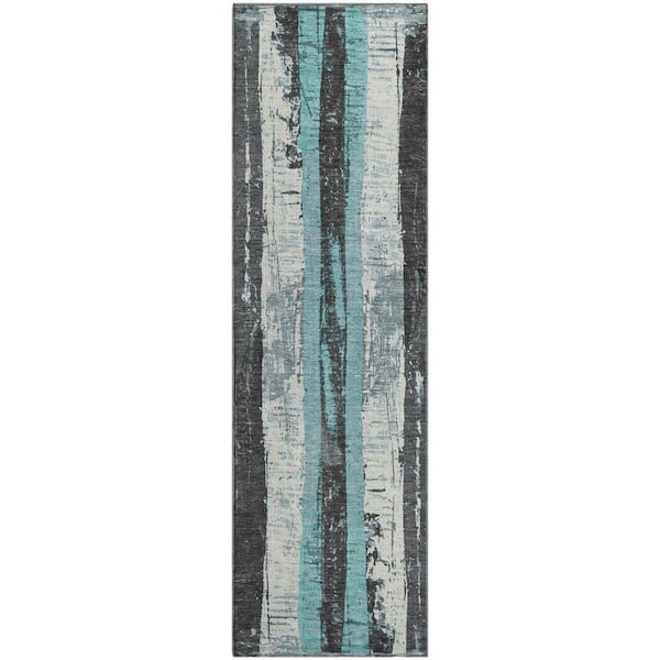 Mayfield Premium Machine Washable Abstract AMF1872 Teal 2 ft. 3 in. x 7 ft. 6 in. Runner Rug