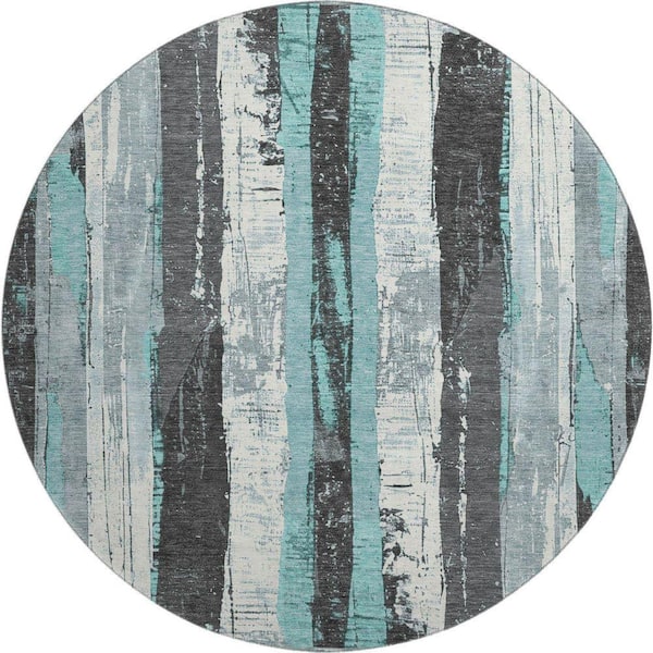 Mayfield Premium Machine Washable Abstract AMF1872 Teal 8 ft. x 8 ft. Round Rug