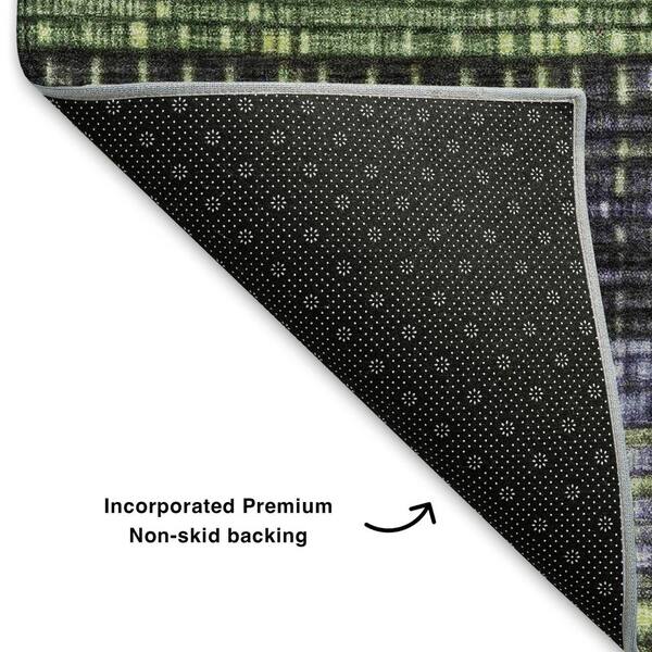 Mayfield Premium Machine Washable Abstract AMF1873 Aloe 8 ft. x 8 ft. Round Rug