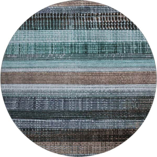 Mayfield Premium Machine Washable Abstract AMF1873 Teal 8 ft. x 8 ft. Round Rug