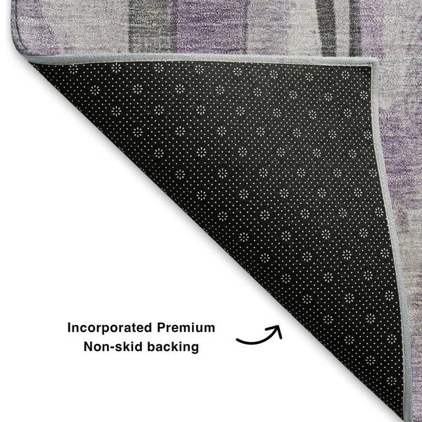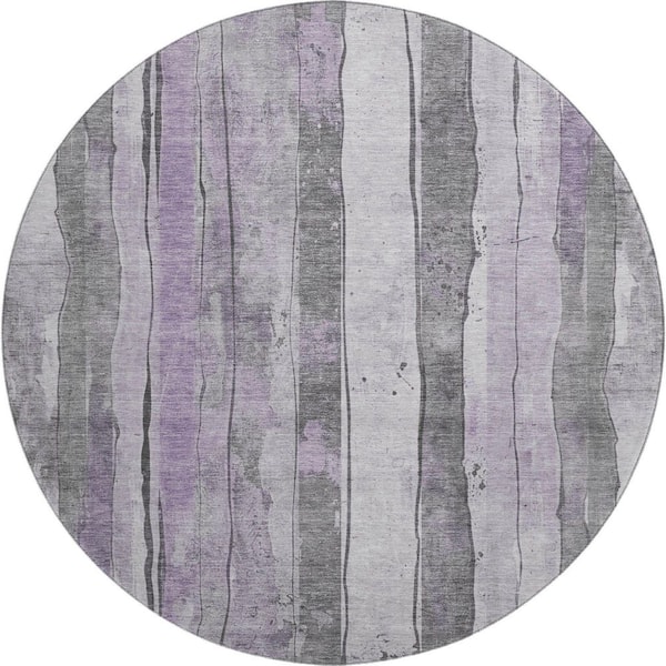 Mayfield Premium Machine Washable Abstract AMF1874 Lavender 8 ft. x 8 ft. Round Rug