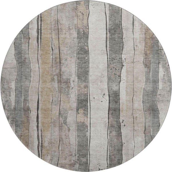 Mayfield Premium Machine Washable Abstract AMF1874 Putty 8 ft. x 8 ft. Round Rug