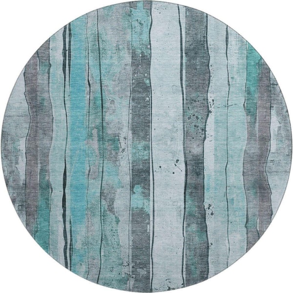 Mayfield Premium Machine Washable Abstract AMF1874 Teal 8 ft. x 8 ft. Round Rug