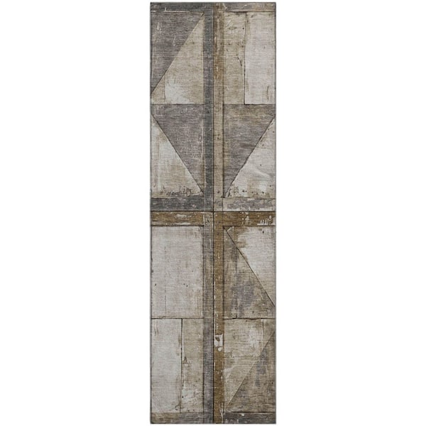 Mayfield Premium Machine Washable Abstract AMF1875 Beige 2 ft. 3 in. x 7 ft. 6 in. Runner Rug