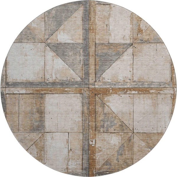 Mayfield Premium Machine Washable Abstract AMF1875 Copper 8 ft. x 8 ft. Round Rug