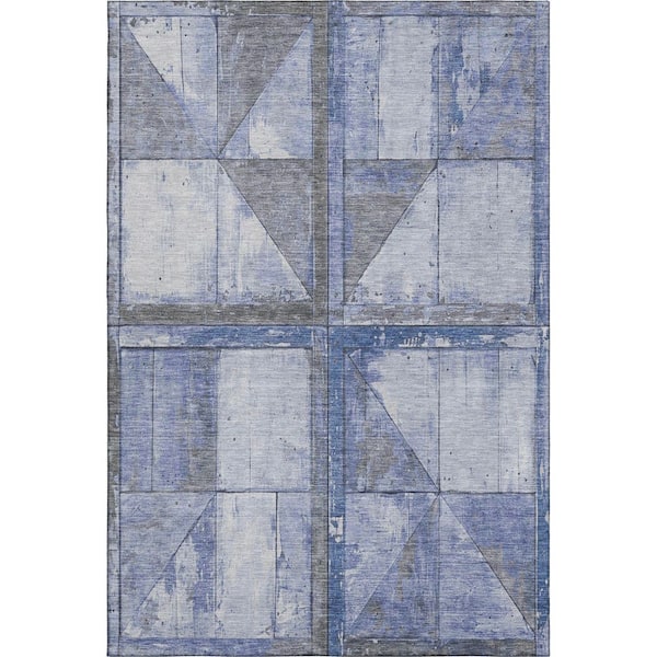 Mayfield Premium Machine Washable Abstract AMF1875 Denim 3 ft. x 4 ft. Area Rug
