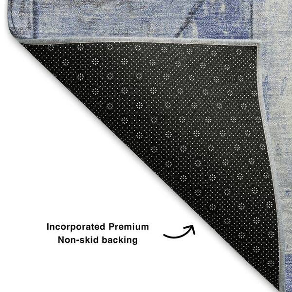 Mayfield Premium Machine Washable Abstract AMF1875 Denim 8 ft. x 8 ft. Round Rug