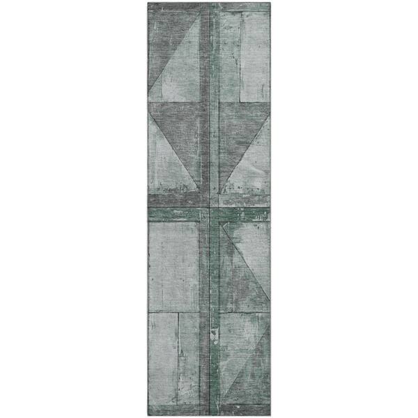 Mayfield Premium Machine Washable Abstract AMF1875 Sage 2 ft. 3 in. x 7 ft. 6 in. Runner Rug