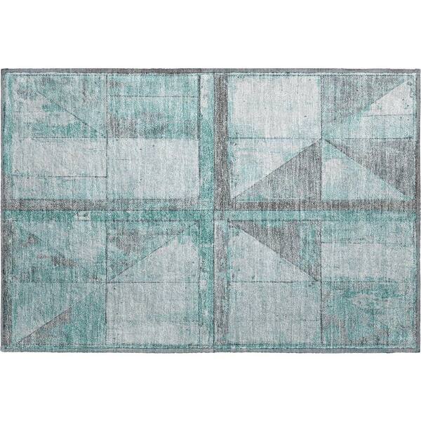 Mayfield Premium Machine Washable Abstract AMF1875 Teal 2 ft. x 3 ft. Area Rug