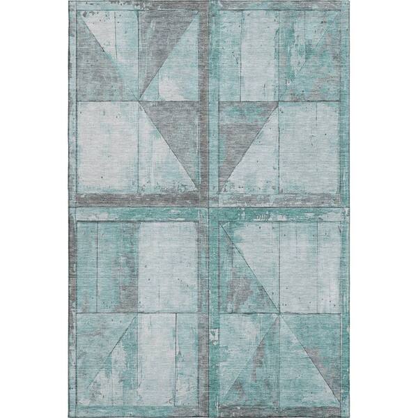 Mayfield Premium Machine Washable Abstract AMF1875 Teal 5 ft. x 7 ft. 6 in. Area Rug