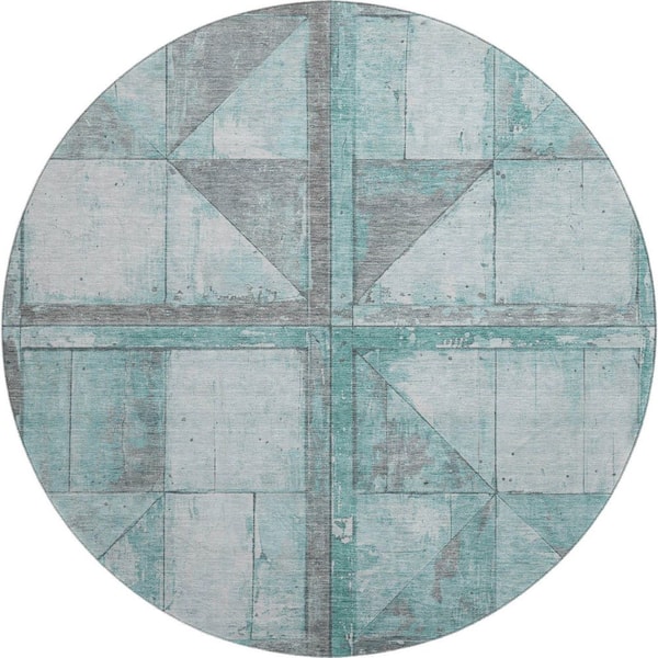 Mayfield Premium Machine Washable Abstract AMF1875 Teal 8 ft. x 8 ft. Round Rug
