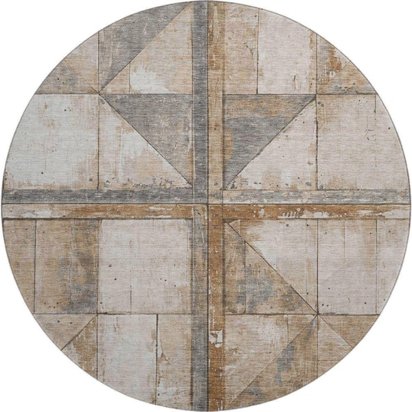 Mayfield Premium Machine Washable Abstract AMF1876 Copper 8 ft. x 8 ft. Round Rug