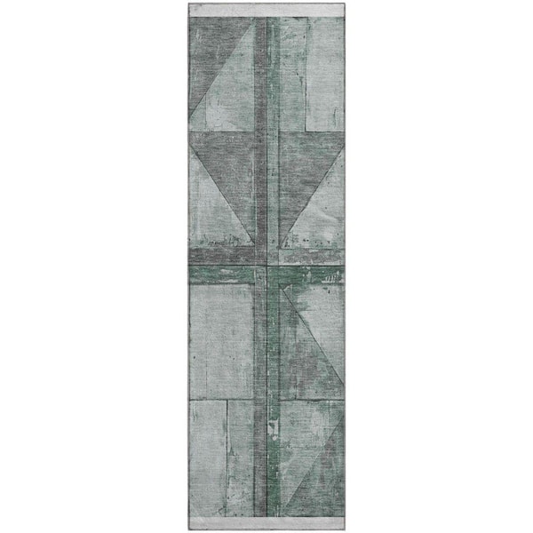 Mayfield Premium Machine Washable Abstract AMF1876 Sage 2 ft. 3 in. x 7 ft. 6 in. Runner Rug