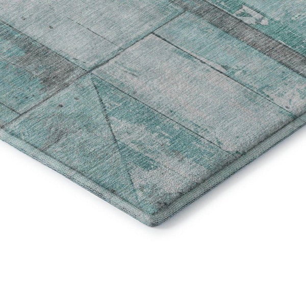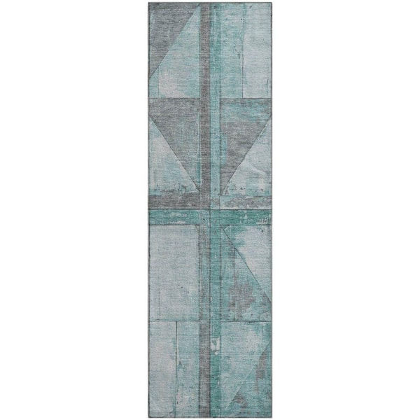 Mayfield Premium Machine Washable Abstract AMF1876 Teal 2 ft. 3 in. x 7 ft. 6 in. Runner Rug