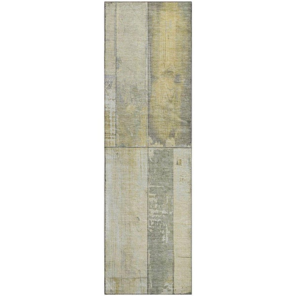 Mayfield Premium Machine Washable Abstract AMF1877 Gold 2 ft. 3 in. x 7 ft. 6 in. Runner Rug