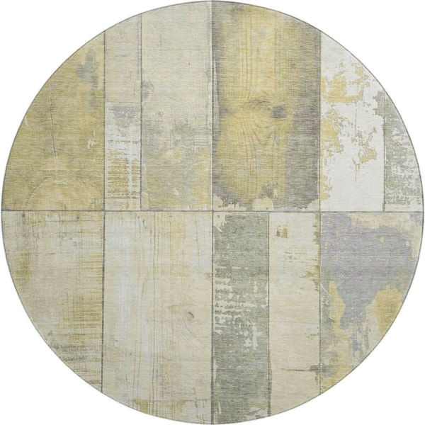Mayfield Premium Machine Washable Abstract AMF1877 Gold 8 ft. x 8 ft. Round Rug