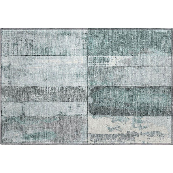 Mayfield Premium Machine Washable Abstract AMF1877 Seafoam 2 ft. x 3 ft. Area Rug