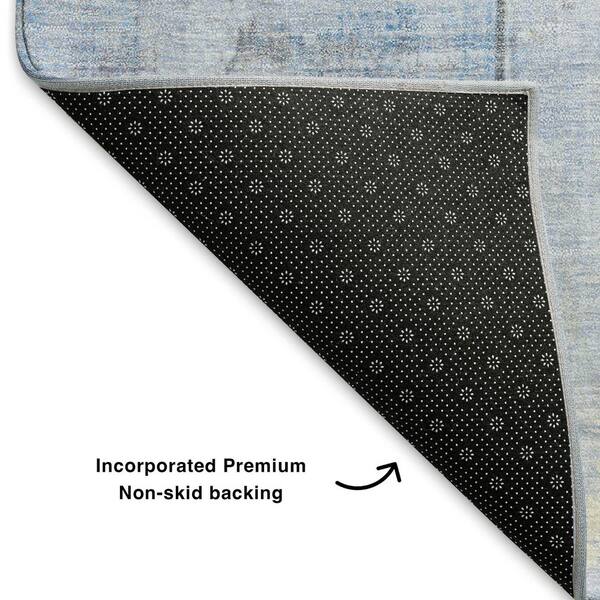 Mayfield Premium Machine Washable Abstract AMF1877 Sky 8 ft. x 8 ft. Round Rug