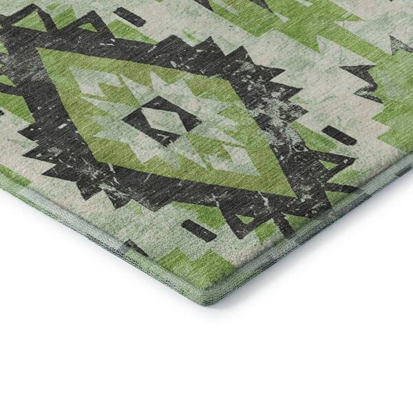Mayfield Premium Machine Washable Abstract AMF1878 Aloe 2 ft. x 3 ft. Area Rug