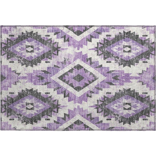 Mayfield Premium Machine Washable Abstract AMF1878 Purple 2 ft. x 3 ft. Area Rug