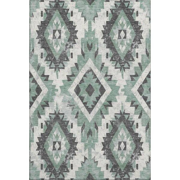 Mayfield Premium Machine Washable Abstract AMF1878 Seafoam 10 ft. x 14 ft. Area Rug