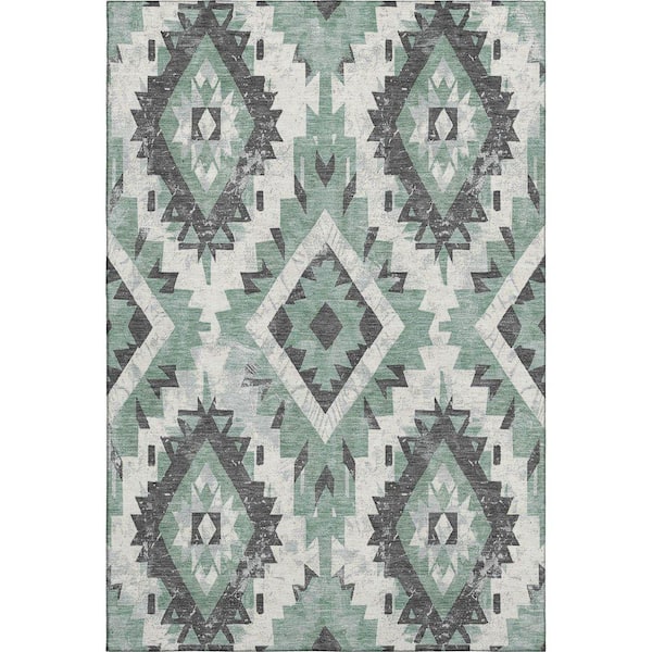 Mayfield Premium Machine Washable Abstract AMF1878 Seafoam 8 ft. x 10 ft. Area Rug