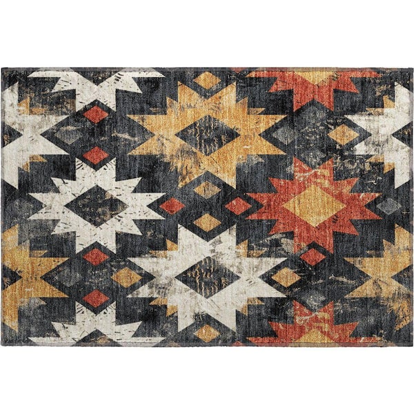 Mayfield Premium Machine Washable Abstract AMF1879 Black 2 ft. x 3 ft. Area Rug