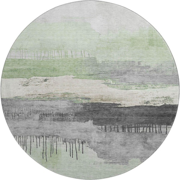Mayfield Premium Machine Washable Abstract AMF1880 Mint 8 ft. x 8 ft. Round Rug