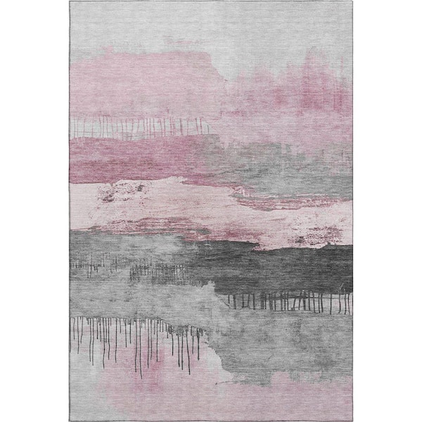 Mayfield Premium Machine Washable Abstract AMF1880 Pink 3 ft. x 5 ft. Area Rug