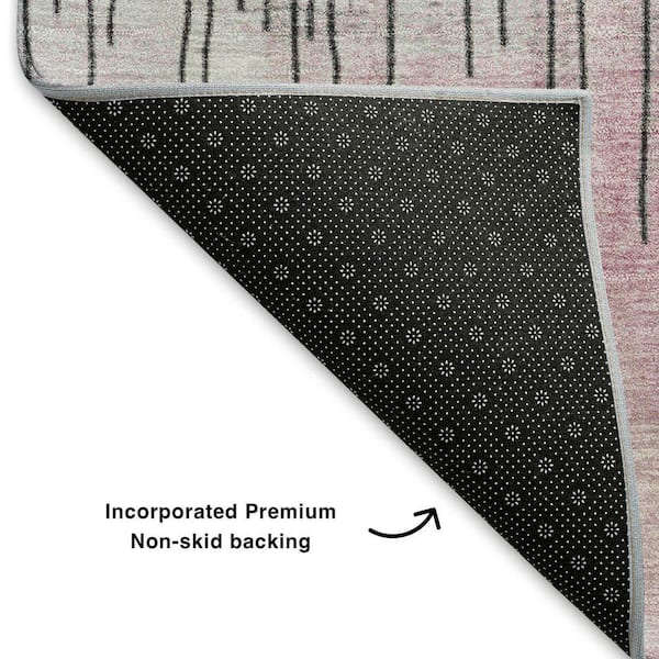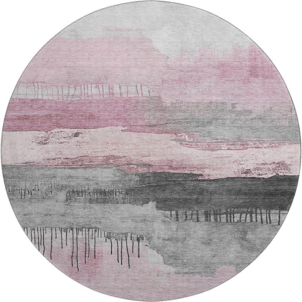 Mayfield Premium Machine Washable Abstract AMF1880 Pink 8 ft. x 8 ft. Round Rug