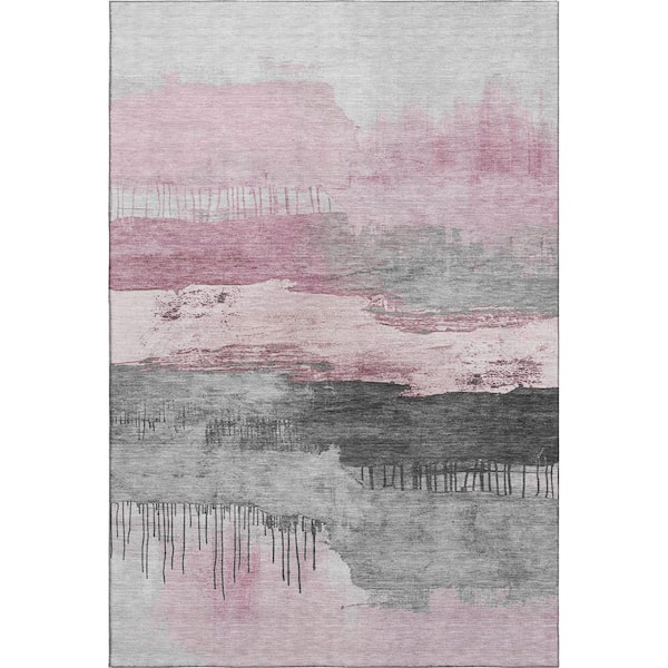 Mayfield Premium Machine Washable Abstract AMF1880 Pink 9 ft. x 12 ft. Area Rug