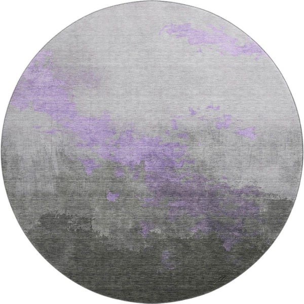 Mayfield Premium Machine Washable Abstract AMF1881 Lavender 8 ft. x 8 ft. Round Rug