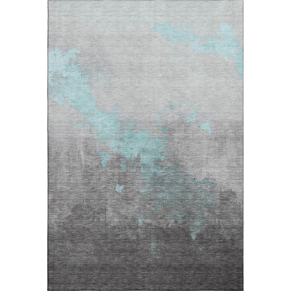 Mayfield Premium Machine Washable Abstract AMF1881 Teal 8 ft. x 10 ft. Area Rug