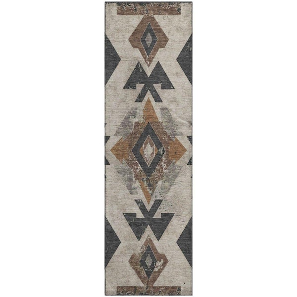 Mayfield Premium Machine Washable Abstract AMF1882 Beige 2 ft. 3 in. x 7 ft. 6 in. Runner Rug