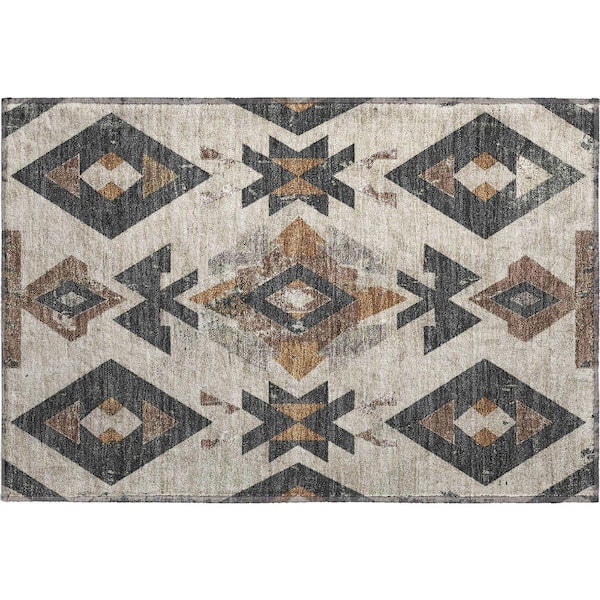 Mayfield Premium Machine Washable Abstract AMF1882 Beige 2 ft. x 3 ft. Area Rug
