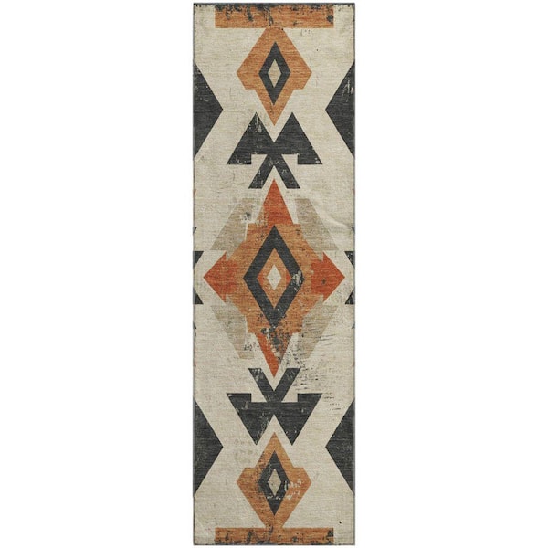 Mayfield Premium Machine Washable Abstract AMF1882 Ivory 2 ft. 3 in. x 7 ft. 6 in. Runner Rug