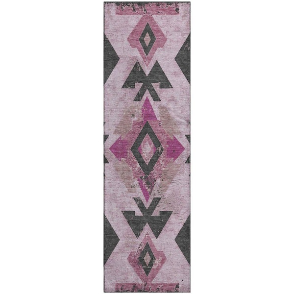 Mayfield Premium Machine Washable Abstract AMF1882 Pink 2 ft. 3 in. x 7 ft. 6 in. Runner Rug