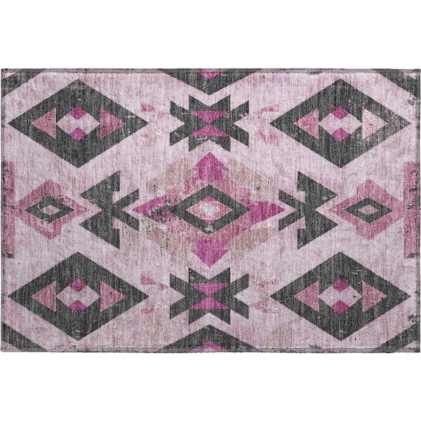 Mayfield Premium Machine Washable Abstract AMF1882 Pink 2 ft. x 3 ft. Area Rug