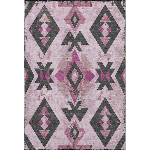 Mayfield Premium Machine Washable Abstract AMF1882 Pink 3 ft. x 4 ft. Area Rug