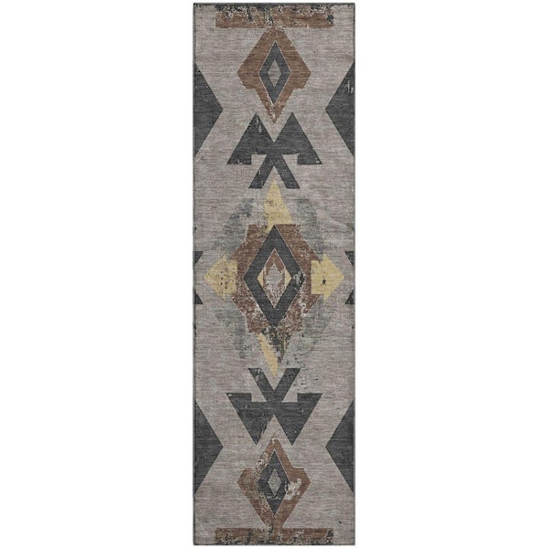 Mayfield Premium Machine Washable Abstract AMF1882 Taupe 2 ft. 3 in. x 7 ft. 6 in. Runner Rug