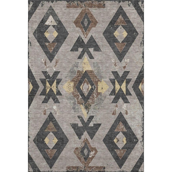 Mayfield Premium Machine Washable Abstract AMF1882 Taupe 8 ft. x 10 ft. Area Rug