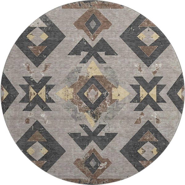 Mayfield Premium Machine Washable Abstract AMF1882 Taupe 8 ft. x 8 ft. Round Rug