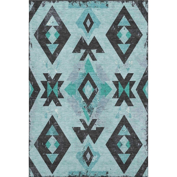 Mayfield Premium Machine Washable Abstract AMF1882 Teal 10 ft. x 14 ft. Area Rug